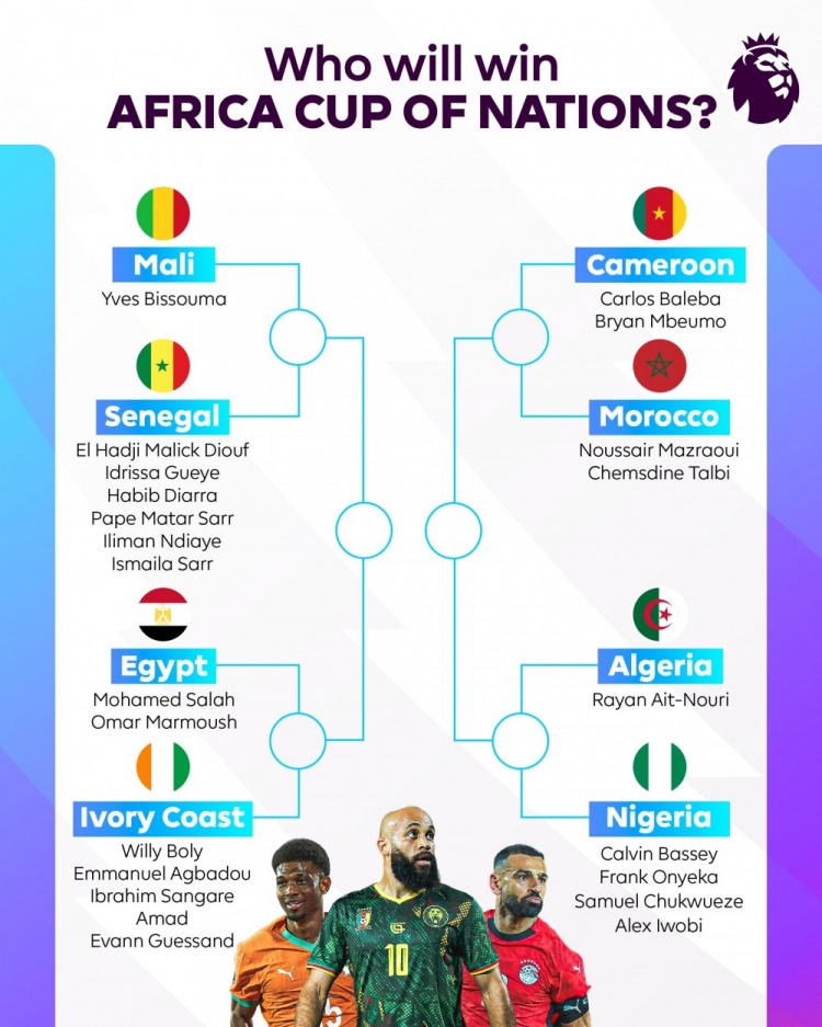 以下为参加非洲杯1/4决赛的23名英超球员名单: